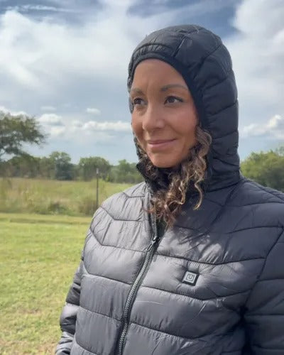 "I used to be miserable freezing at my kid's games. This Fyren heated jacket is a complete game-changer. I turn on the heat, and the warmth spreads all over my back, neck, and front. It's SO much better than a normal coat. I'm finally comfortable outside in the cold for hours!"
